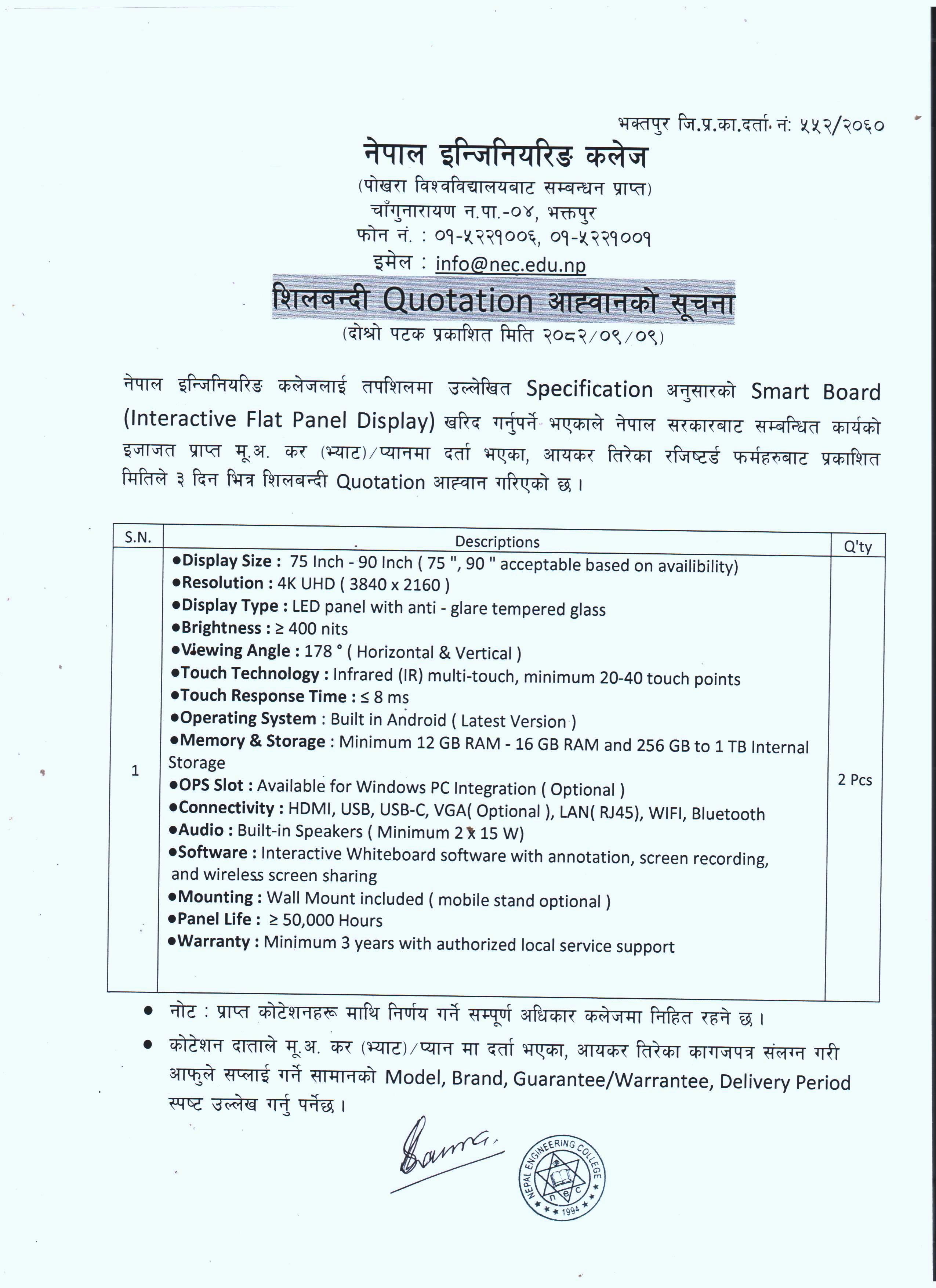 Prospectus Design and Printing सम्बन्धि शिलबन्दी Quotation आह्वानको सूचना